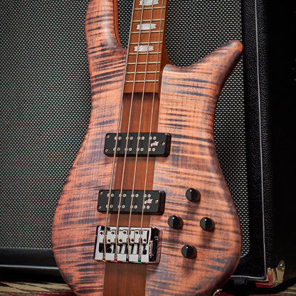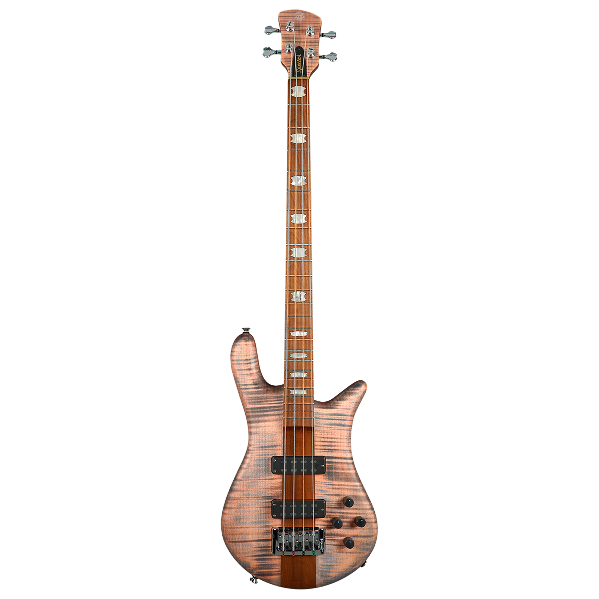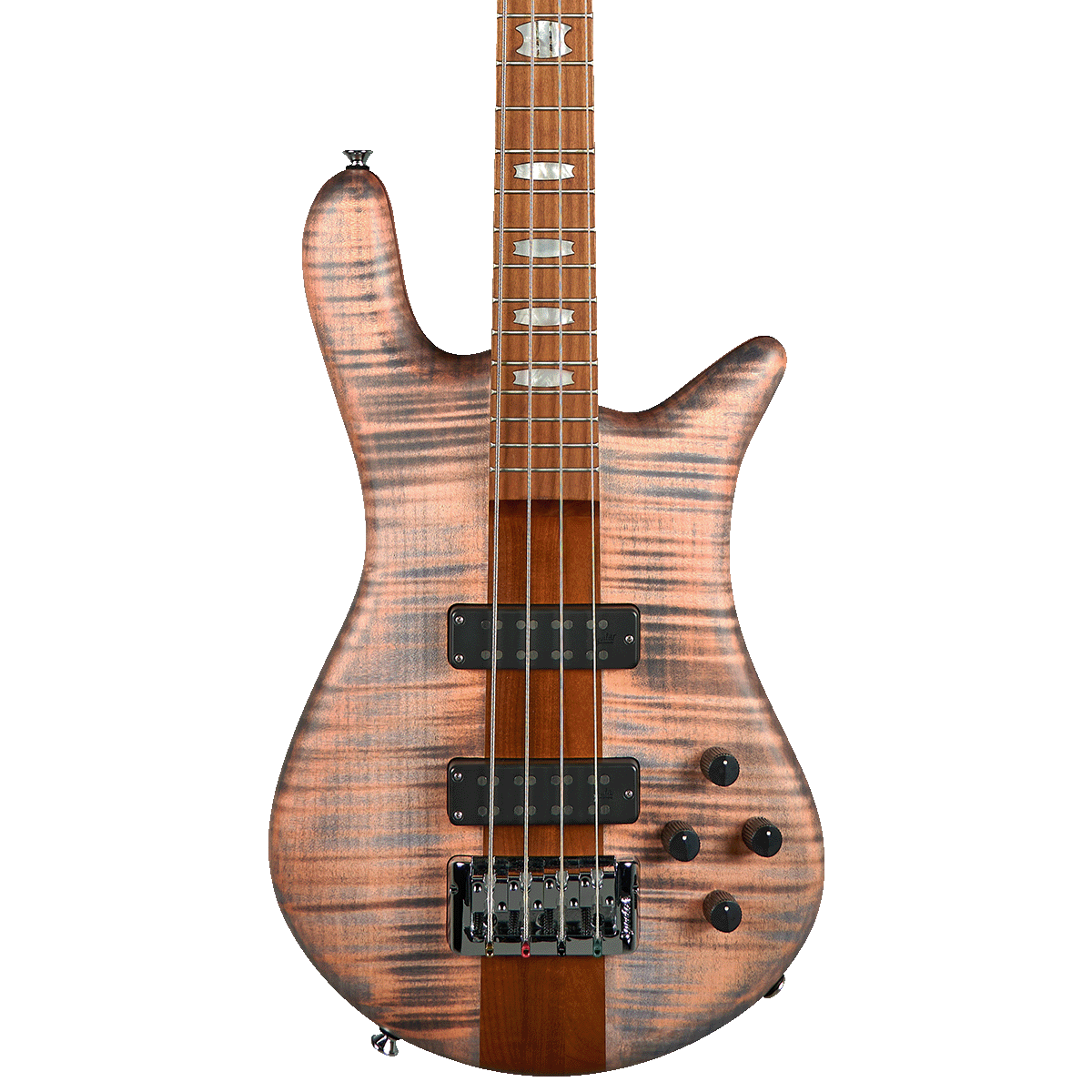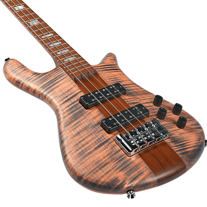 Neck-through construction has long been central to the Spector design. The Euro RST takes this concept to the next level with a three-piece Roasted Maple neck & fingerboard, which not only gives this design a distinct look, but offers enhanced stability and rigidity. This perfectly tempered tonewood is paired with a uniquely figured Flame Maple top and Empresswood back, for striking looks, resonance, and lightweight performance.