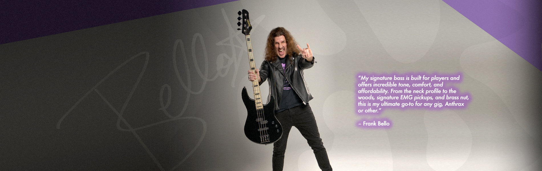 Introducing the NC-4 Frank Bello Signature: slim neck profile, toneful woods, signature EMG pickups, and brass nut. Now available in Black Sapphire finish.