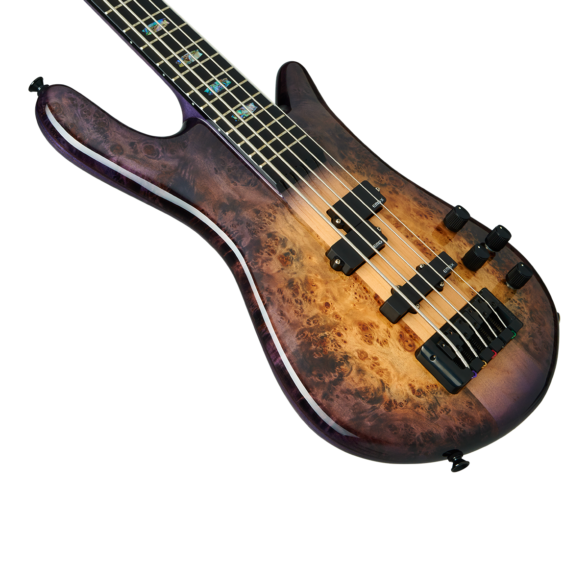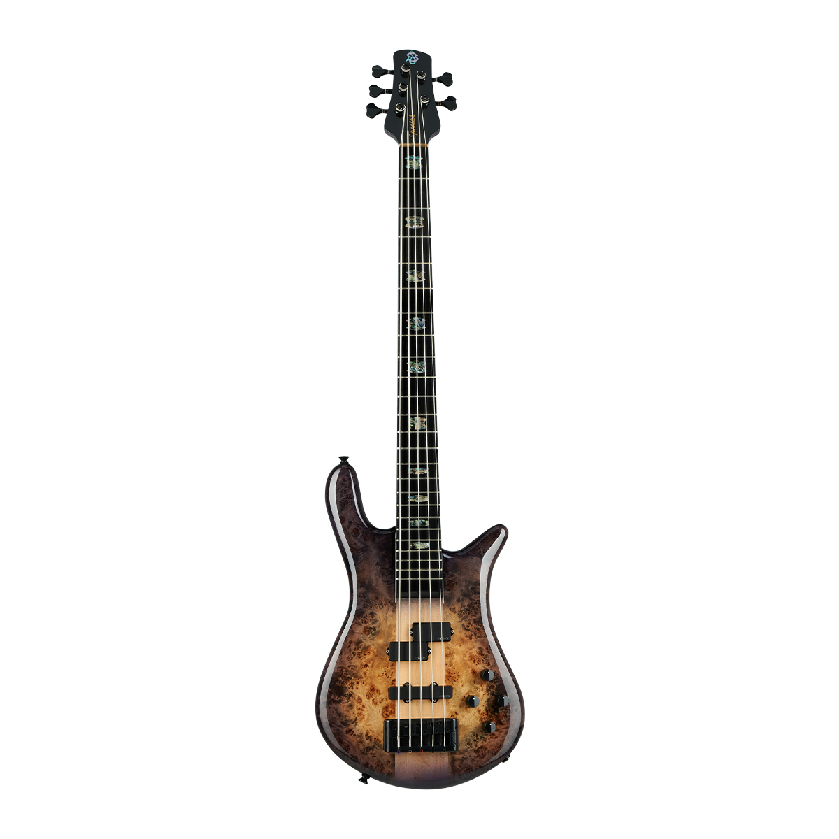 The Ebony fingerboard is adorned with Spector's signature Crown inlay, made from gorgeous laminated Abalone.