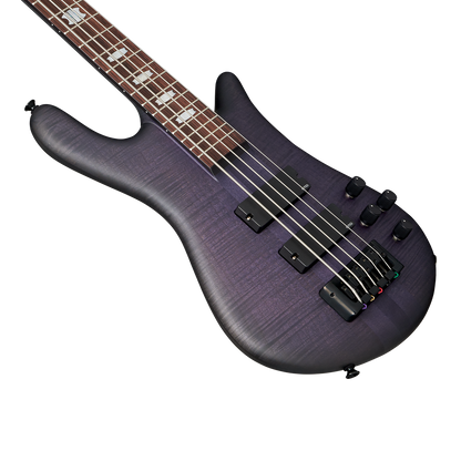 The Euro LX offers all the features that have made the Spector name famous around the globe. Inspired by the iconic NS-2, Euro LX basses feature a fully carved and contoured body, high-grade tonewoods, and professional-grade electronics and hardware. For the first time ever, players can now choose between neck-thru and bolt-on construction in the Euro LX range. Each Euro LX bass, regardless of construction, is crafted using premium materials, including a European Alder body, figured European Maple top, and a 3-piece North American Maple neck combined with a Rosewood fingerboard for strength, stability, and sustain. These basses are then outfitted with a lightweight, aluminum bridge for spot-on, reliable intonation. Premium active pickups from EMG provide the exceptional clarity, attack, and silent operation that Spector is known for. Spector is proud to offer the all-new Spector Legacy preamp for the Euro LX range. This new preamp was designed in collaboration with Darkglass Electronics to deliver the classic 'Spector growl' heard on countless iconic recordings over the years. The newly revised Euro LX range is available in four distinct, hand-rubbed stains, including Transparent Black, Natural Sunburst, Haunted Moss, and Nightshade. Each of these enchanting colors features a durable and comfortable matte finish. Rediscover the Spector experience with the all-new Euro LX lineup.
