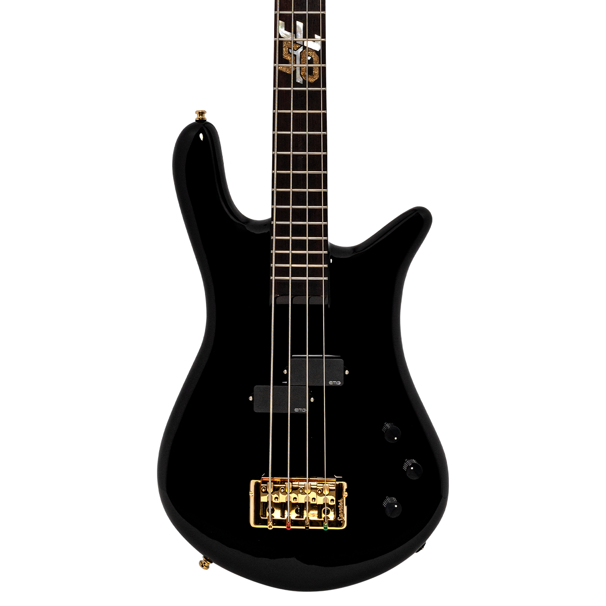 The Euro4 Ian Hill is reminiscent of an 80’s era Spector with solid Maple body wings, a 3-piece maple neck, Rosewood fingerboard with a custom Judas Priest 50th anniversary inlay, premium electronics and gold hardware. The neck profile on the Euro4 Ian Hill has been carefully tapered to Ian’s specifications, resulting in a slimmer shape that’s sleek and comfortable. When it comes to reproducing the countless classic tones in the Judas Priest catalog, Ian relies on a single EMG P pickups and a proprietary Spector TonePump active tone circuit. Together, this electronics package delivers enough power and versatility to cut through any mix. The Euro4 Ian Hill is the perfect choice for die-hard fans of Judas Priest, or bassists looking for an instrument that will provide both classic and cutting tones.