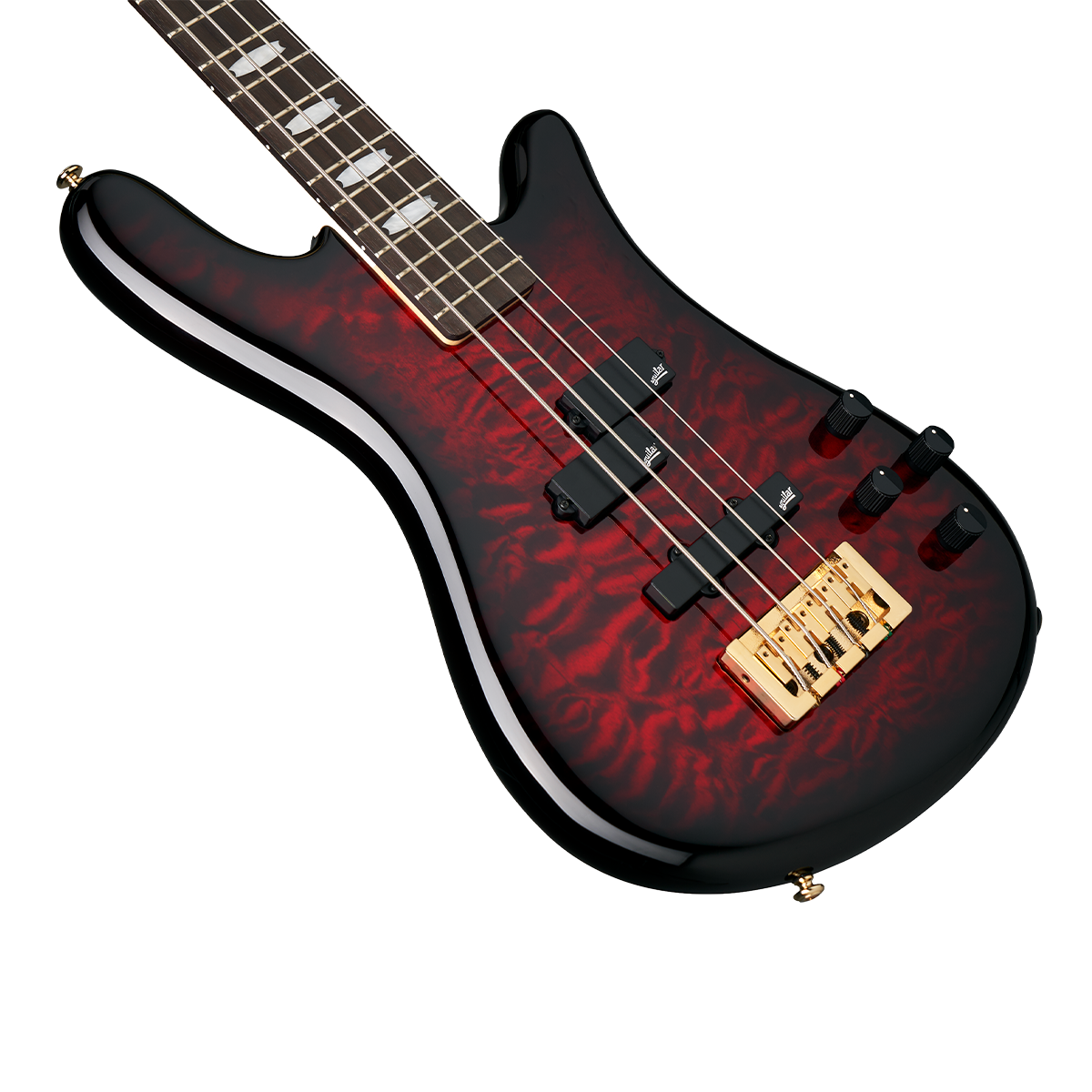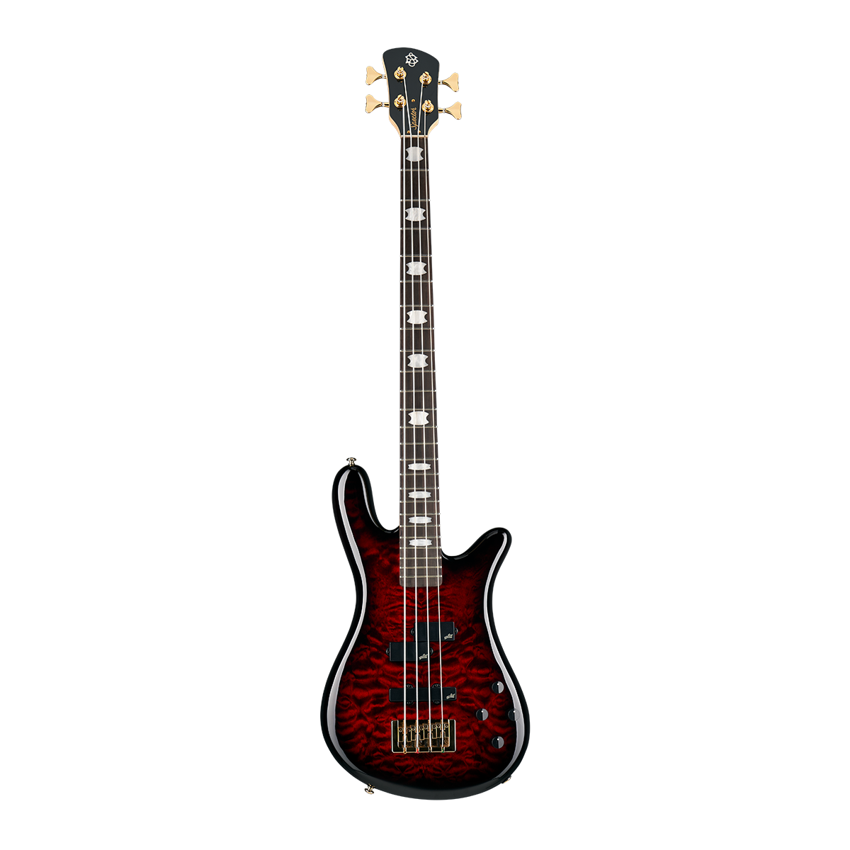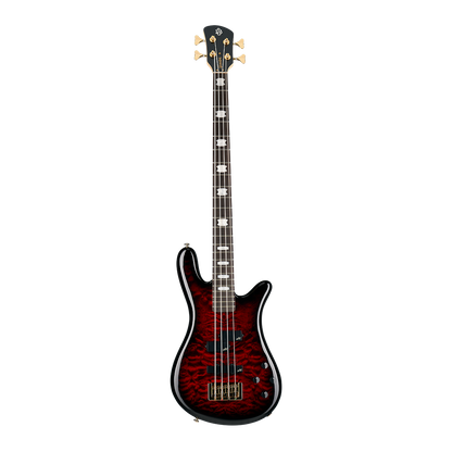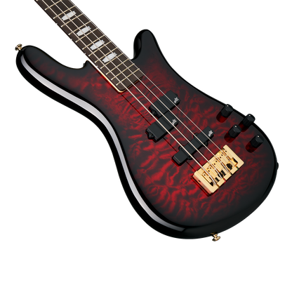 The NS Icon Bolt-On pairs a resonant, fully curved Alder body with a bolt-on 3-piece rock maple neck and rosewood fingerboard, – a combination of tonewoods used frequently in both our Custom Shop and renowned Euro Series.Aesthetically, players can choose from two solid gloss finishes (Black and White) or two timeless stain finishes (Black Cherry and Black Stain), both featuring highly figured Quilted Maple tops. Every model is adorned with our signature Crown inlays and gold hardware, including a fully intonating locking bridge, high-precision tuners, polished brass nut, and signature Spector control knobs. The NS Icon Bolt-On is available in both 4-string and 5-string models.