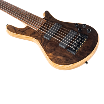 The Legend 6 Classic combines the iconic silhouette of the NS design with rock-solid bolt-on construction to provide a reliable and affordable instrument for all players. The extremely comfortable curved body is crafted from lightweight and resonant ash and features an exotic Walnut Burl top. These basses now include custom voiced pickups from Bartolini that aim to provide the warmth of a classic passive design, while preserving the clarity and definition Spector is known for. These pickups are perfectly complemented by Spector’s TonePump Jr. active tone controls that offer interactive treble and bass controls for sculpting your sound.The Legend Classic also features a 3-piece maple neck, a 24 fret pau ferro fingerboard, and professional quality die-cast hardware. The Legend 6 Classic offers the looks, tone, and feel of basses twice its price.