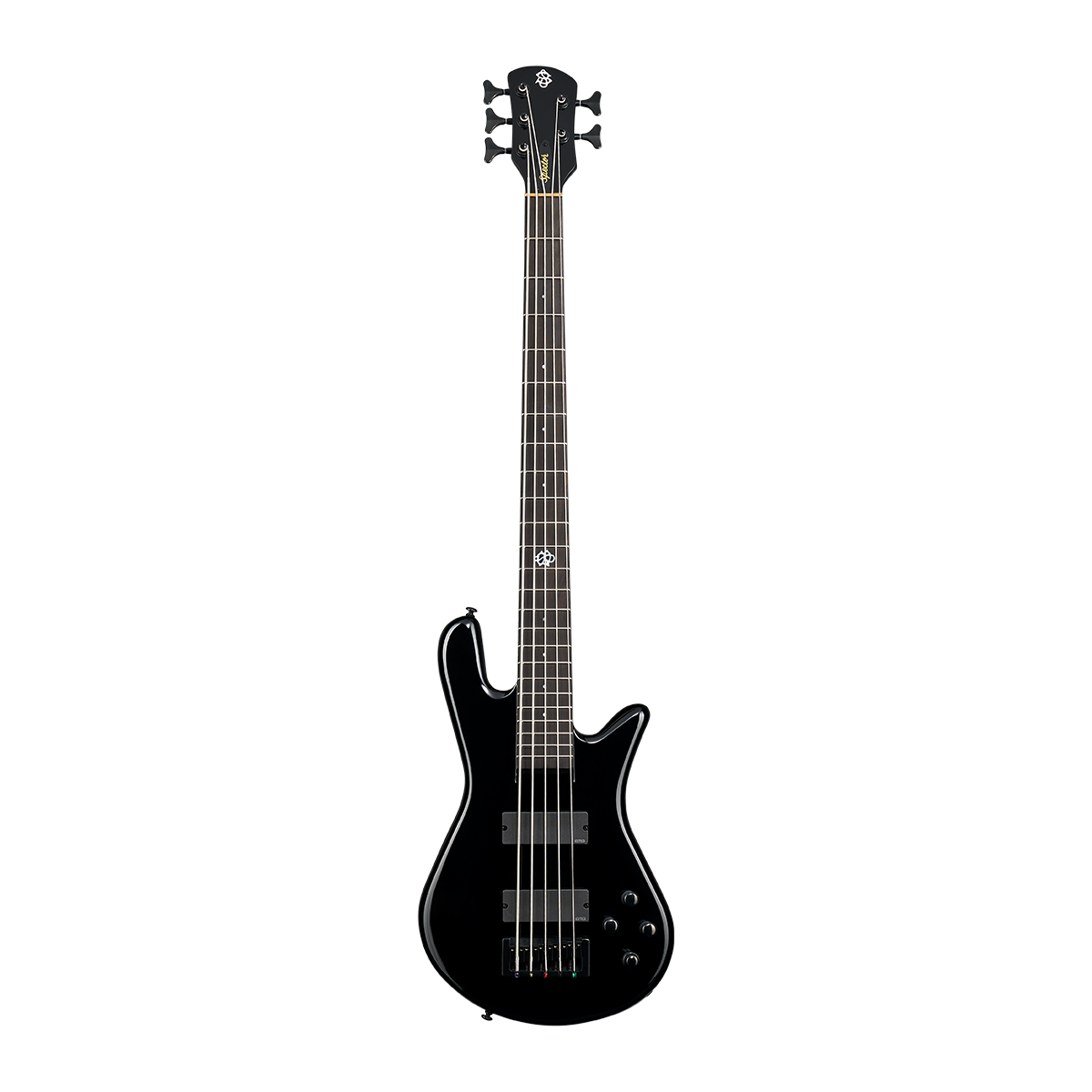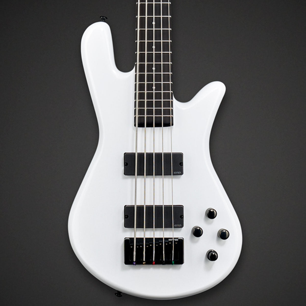 Spector neck-thru construction with illuminating side dots, wrapped in a sleek and classic White Sparkle, Solid Black, Metallic Plum, or Gunmetal Grey gloss finish.